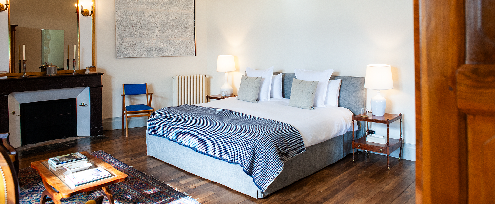 Located next to the games room, on the top floor of the Castle's defense tower, this very bright suite offers magnificent views of the entire property and the Pyrenees in the background. One could almost imagine Rapunzel at her window!